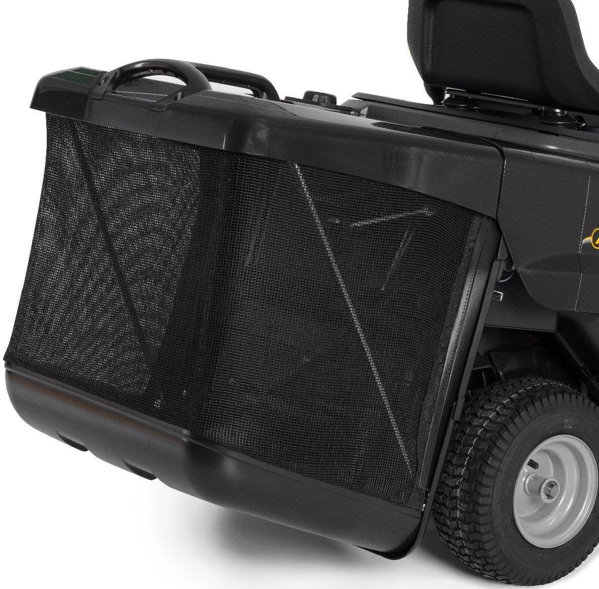 Die Schnitthöhe ist manuell 6-fach von 30 – 80mm verstellbar und das Auffangvolumen des Textilfangkorbs beträgt 150 Liter.