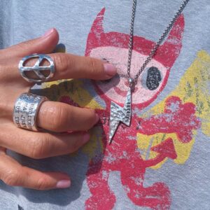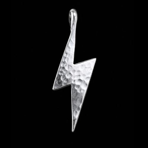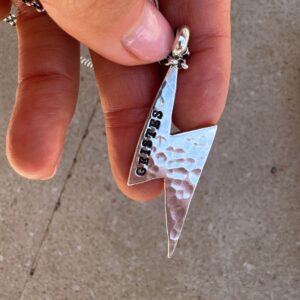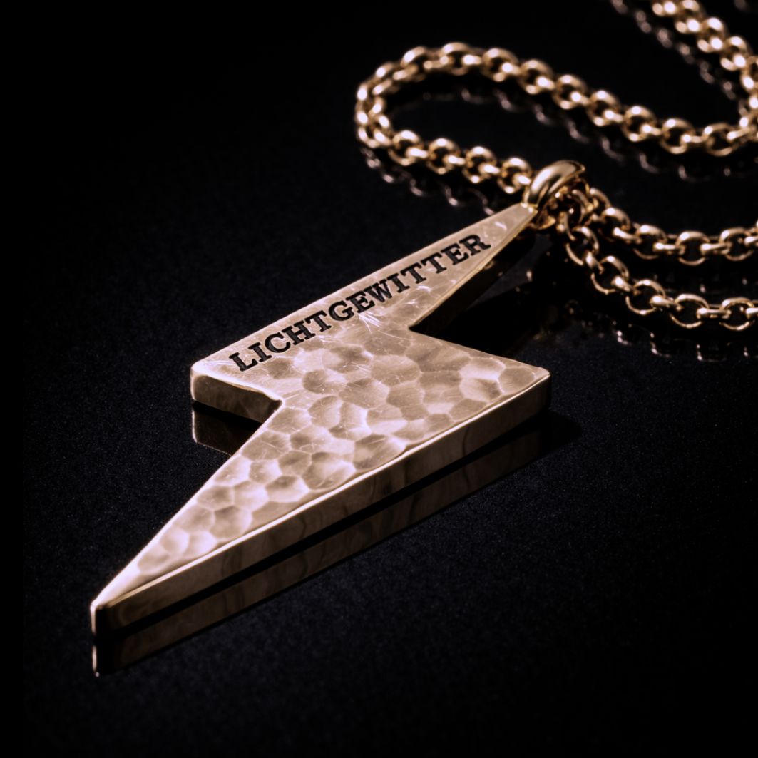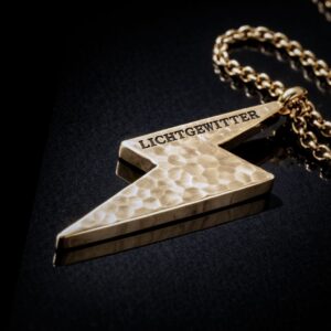Schwerer & massiver Sterling Silber Blitz Anhänger für eine Kette mit Gravur. Der Blitzanhänger wird mit eigener Wunschgravur in der CAPULET Schmuck Werkstatt München von Hand geschmiedet und beschlagen.
