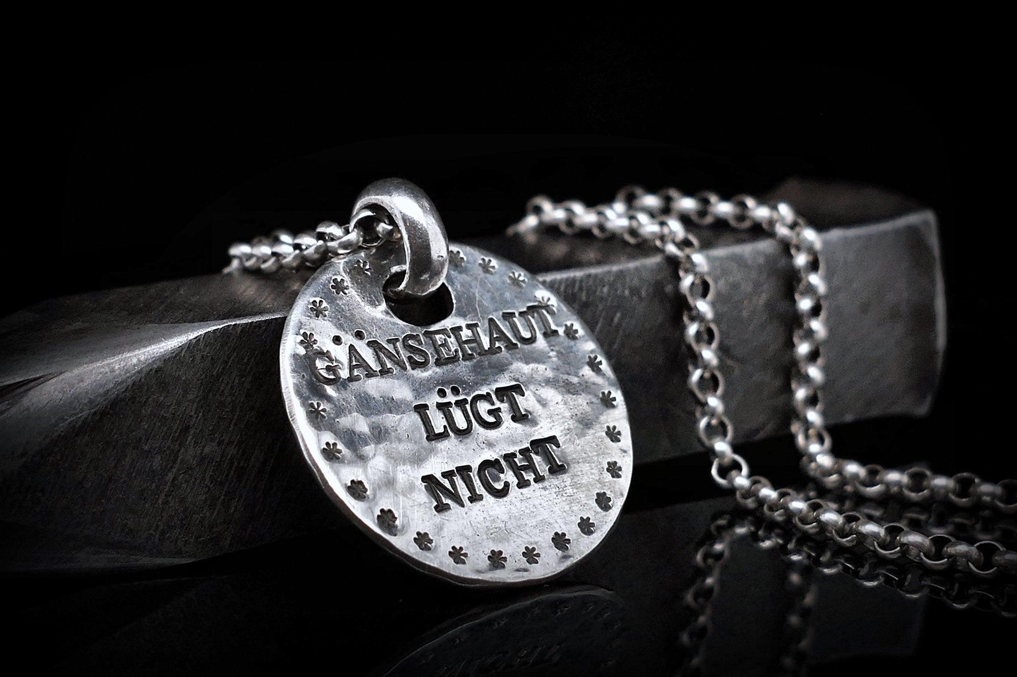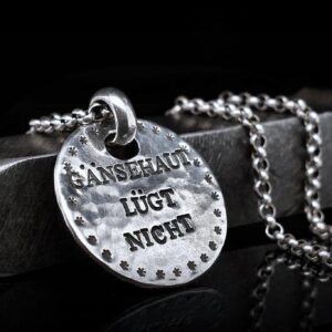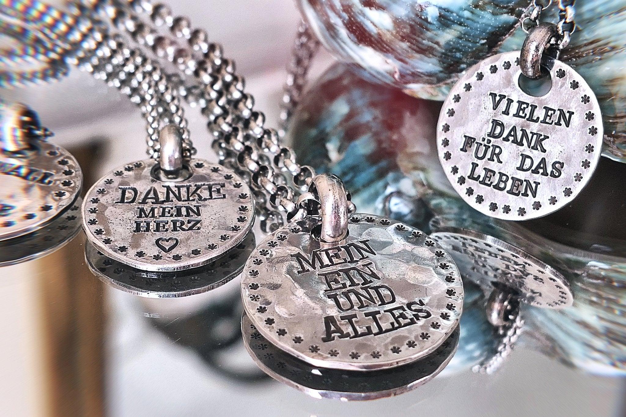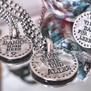 - Jeder Anhänger mit Gravur wird aufwendig von Hand geschmiedet