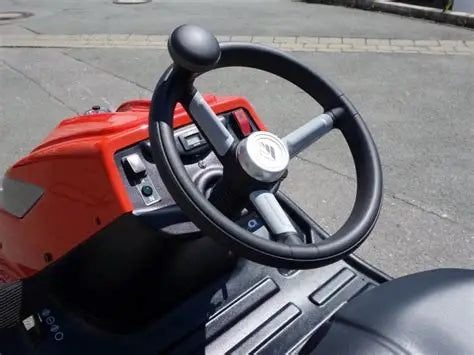 Zur Ausstattung gehören zahlreiche Vorrichtungen, die die Arbeit des Bedieners erleichtern: die elektromagnetische Betätigung der Kupplung, das hydrostatische Getriebe, das sperrbare Differential, das ermöglicht, jedes Hindernis auf jedem Gelände zu überwinden, sowie die zentrale Schnitthöheneinstellung.