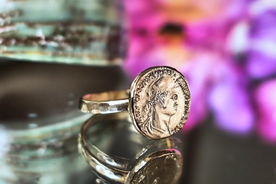 - Massiver 925 Sterling Silberring mit einer antiken Münze