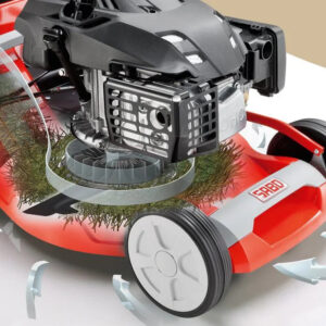 Mulchkit optional erhältlich: Das Schnittgut wird so klein gehäckselt, dass es als natürlicher, biologischer Dünger auf der gemähten Fläche verbleiben kann. Besonders vorteilhaft in wachstumsstarken Perioden, da Entsorgung des Schnittguts entfällt.