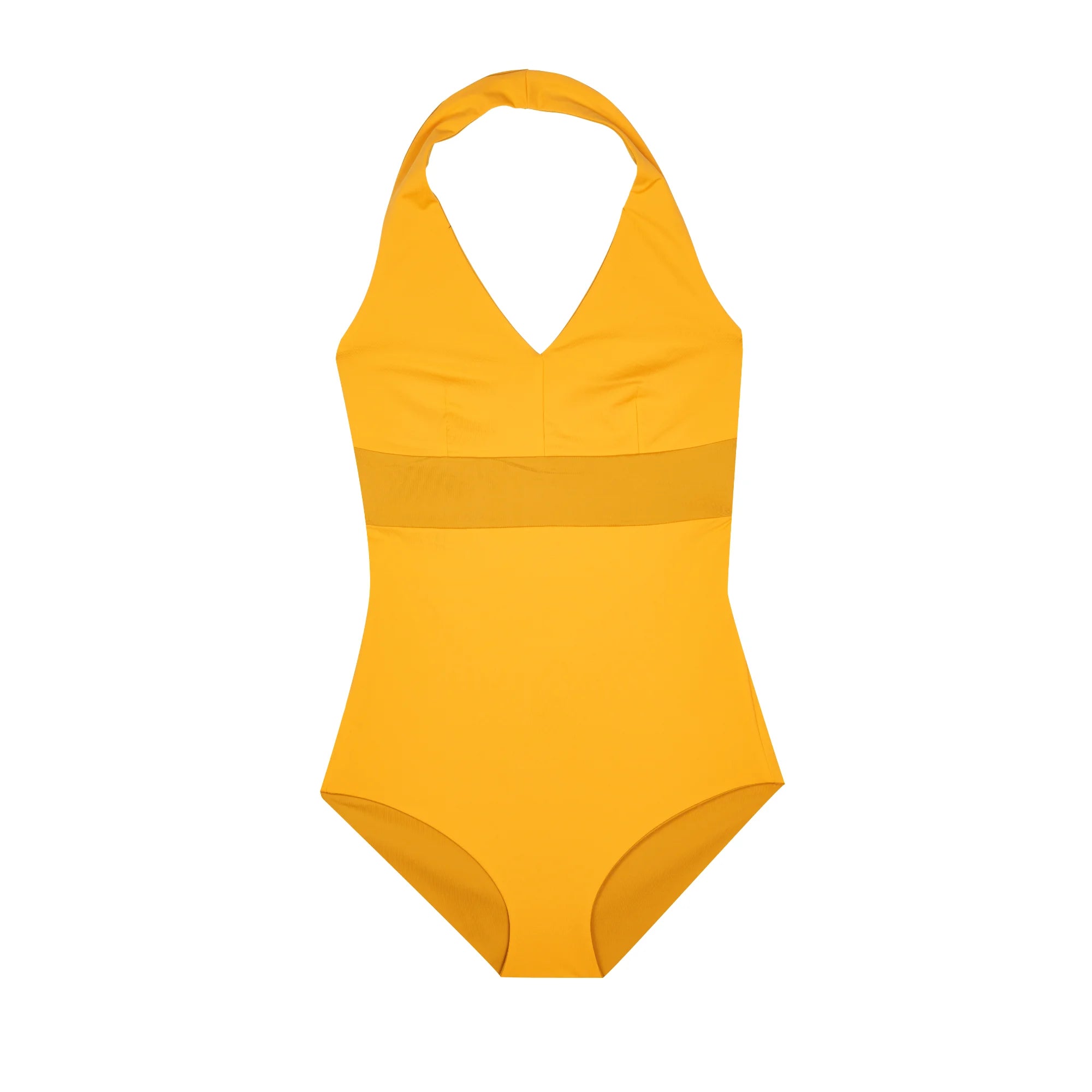 The WONDERBODY effortlessly adapts to your individual needs and are tied both around the neck and at the back. The halterneck and the band under the bust provide great support and accentuate your silhouette. The clever V-neck, the contrasting band between the waist and bust, and the knotted straps give this MYMARINI a particularly expressive look.